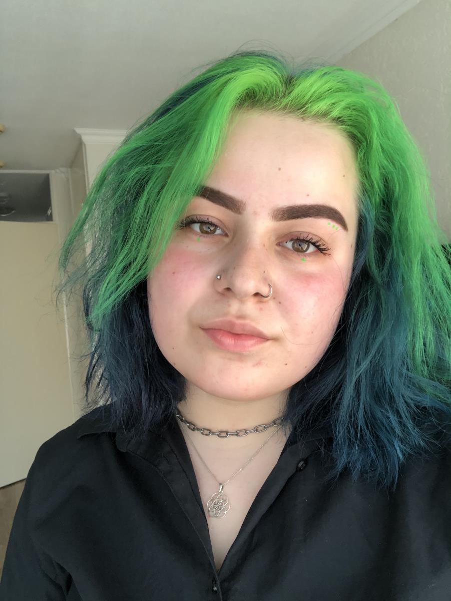 I'm wearing Manic Panic's Electric Lizard and After Midnight. After Midnight because I was looking for the best shade blue for my hair and Electric Lizard, because I wanted something different and I love this neon green colour.
