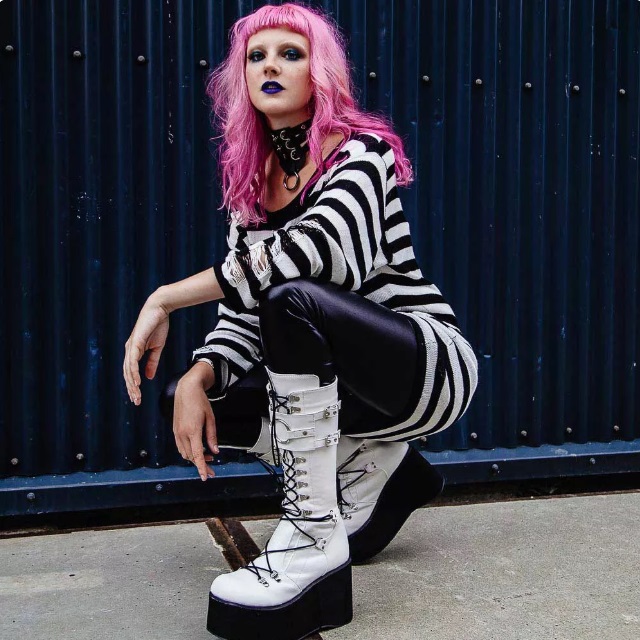 DemoniaCult - DAMNED318 Bottes de plateforme - Rose