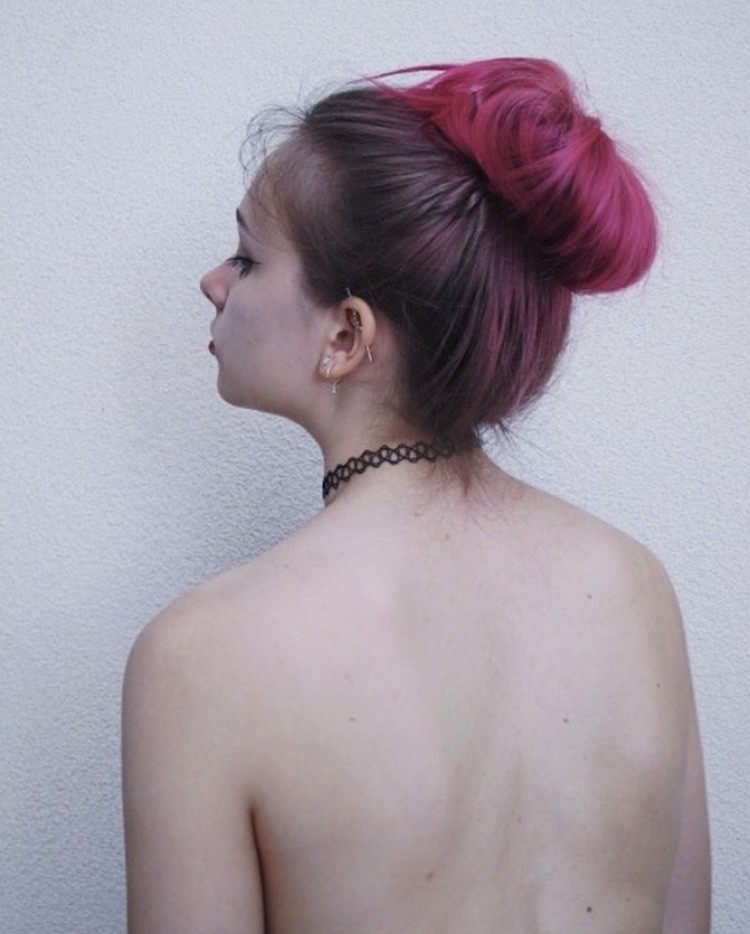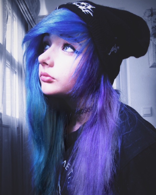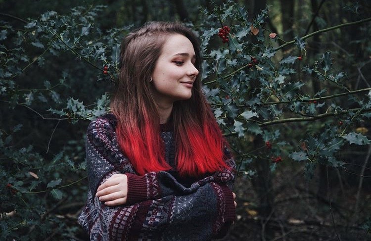 I would love to dye my hair bright red or purple like in the photos, or just brown because it matches with all kinds of outfits. I don’t mind too much as long as it looks good with my skin tone! My most recent photo is the one where I’m wearing the green beanie—there you can see my current natural blonde hair color, as I haven’t dyed it for years. Since I really miss dyeing it and my hair is healthy enough, I’d love to start dyeing it again.