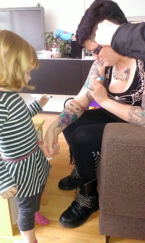 Bodysmods; Tattoo's (kuiten, lies, heup, sleeve links is af, sleeve rechts nog mee bezig), piercings (oren 5x, 2x neus,lip) stretching (24mm links, 15 mm rechts)