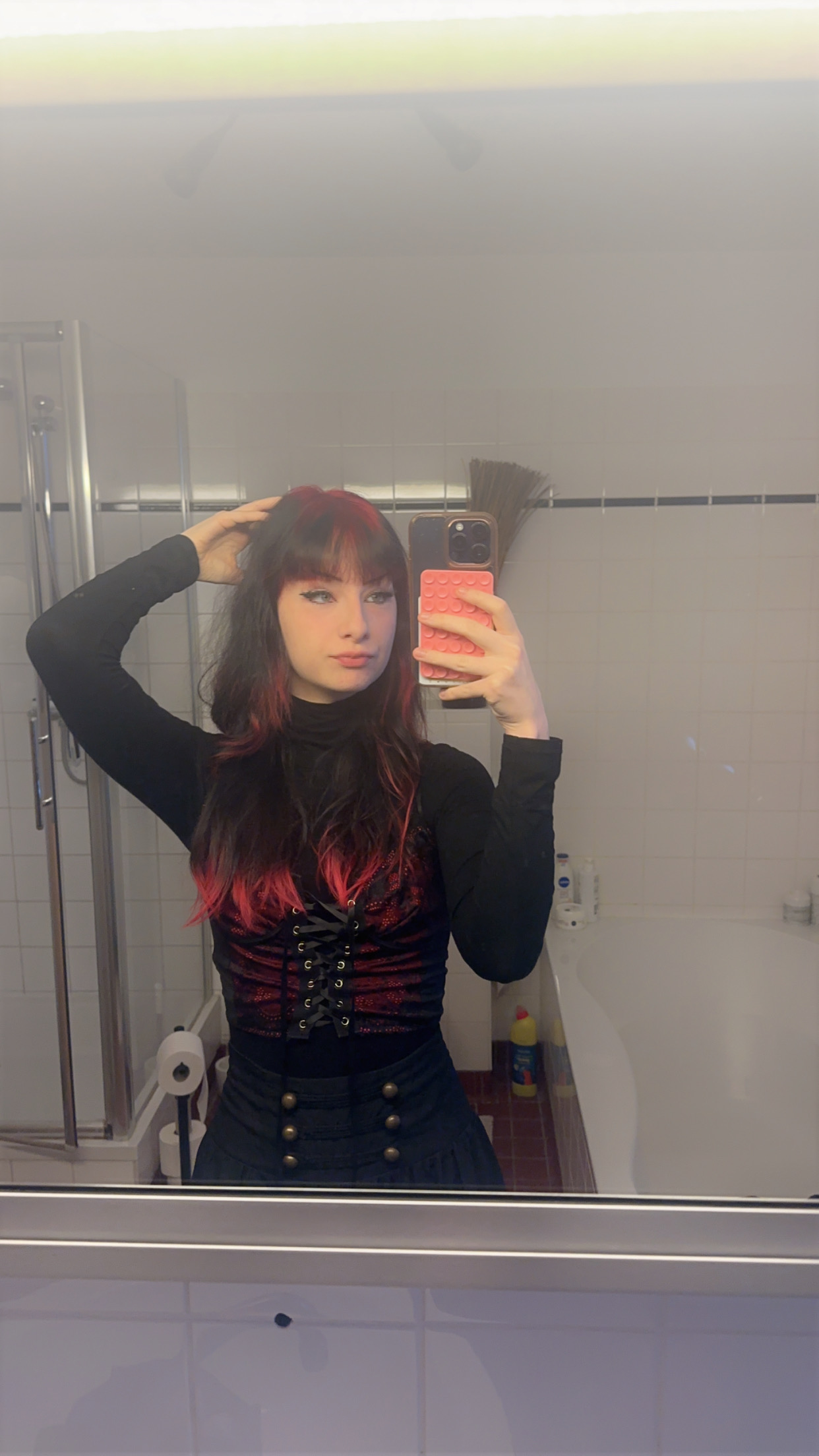 Hair colourBlack and red
